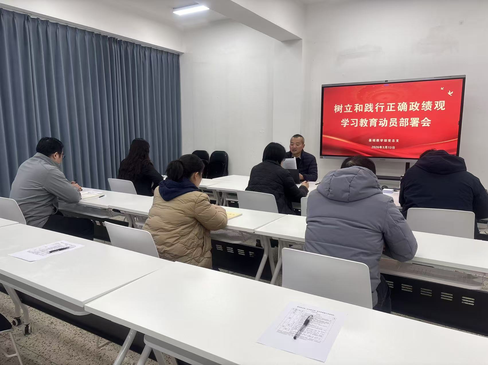 3月13日下午,基础教学部党总支在部门会议室召开树立和践行正确政绩观学习教育动员部署会,全面启动相关工作。会议由党总支书记郑洪成主持,全体党总支委员、各党支部书记参加。
